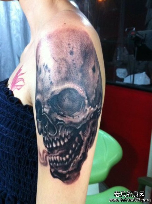肩部五芒星骷髅纹身_骷髅纹身图案大全_纹身图吧