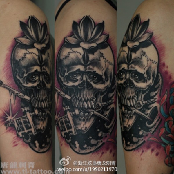 手臂骷髅菊花纹身_骷髅纹身图案大全_纹身图吧