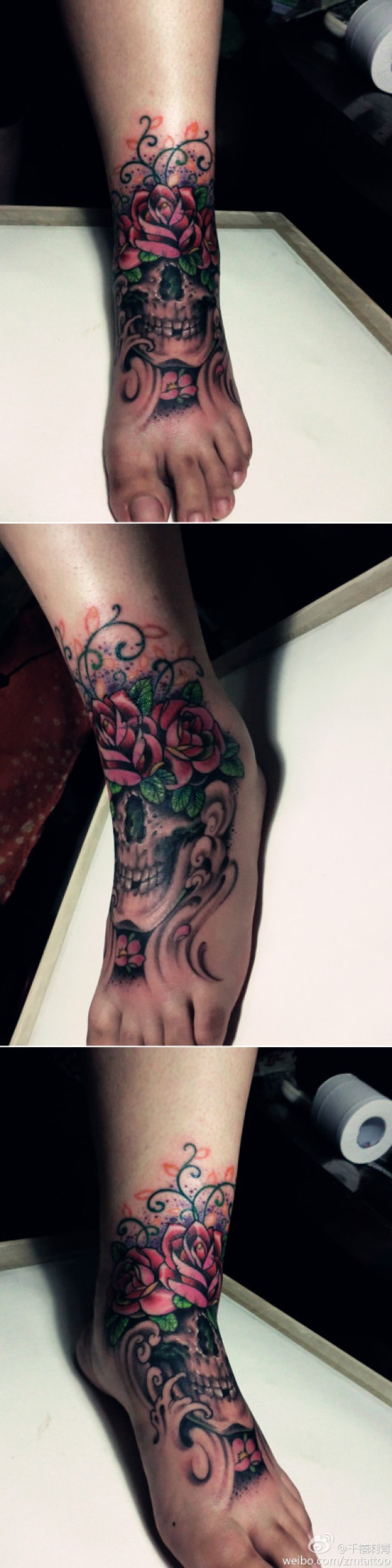 脚背潮流时尚的骷髅纹身花卉纹身图案_骷髅纹身图案大全_纹身图吧