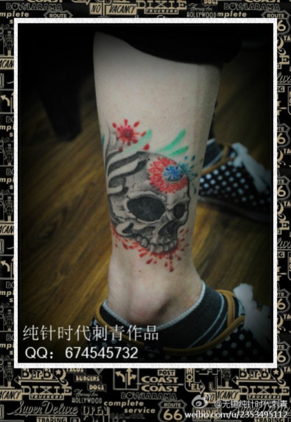 腿部潮流经典的欧美骷髅纹身图案_骷髅纹身图案大全_纹身图吧