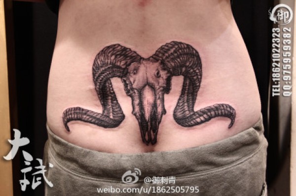 腰部超帅的羊骷髅头纹身图案_骷髅纹身图案大全_纹身图吧