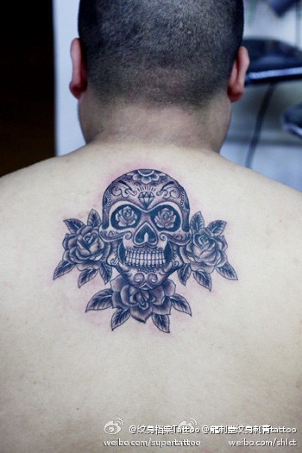 男人后背经典潮流的黑灰骷髅纹身图案_骷髅纹身图案大全_纹身图吧