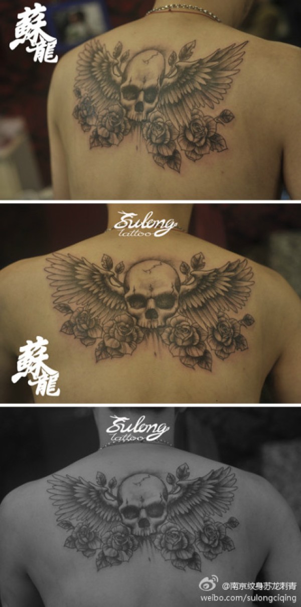 背部骷髅翅膀纹身_骷髅纹身图案大全_纹身图吧