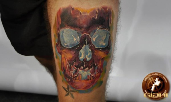手臂超帅经典的欧美彩色骷髅纹身图案_骷髅纹身图案大全_纹身图吧