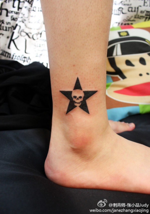 女生脚踝处小巧的骷髅纹身图案_骷髅纹身图案大全_纹身图吧