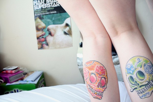 女生腿部时尚精美的欧美骷髅纹身图案_骷髅纹身图案大全_纹身图吧