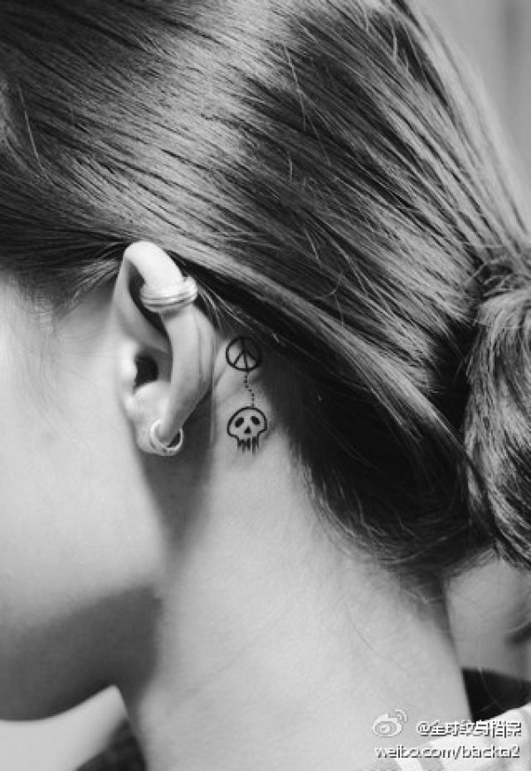 女生耳部小巧的反战符号与骷髅纹身图案_骷髅纹身图案大全_纹身图吧