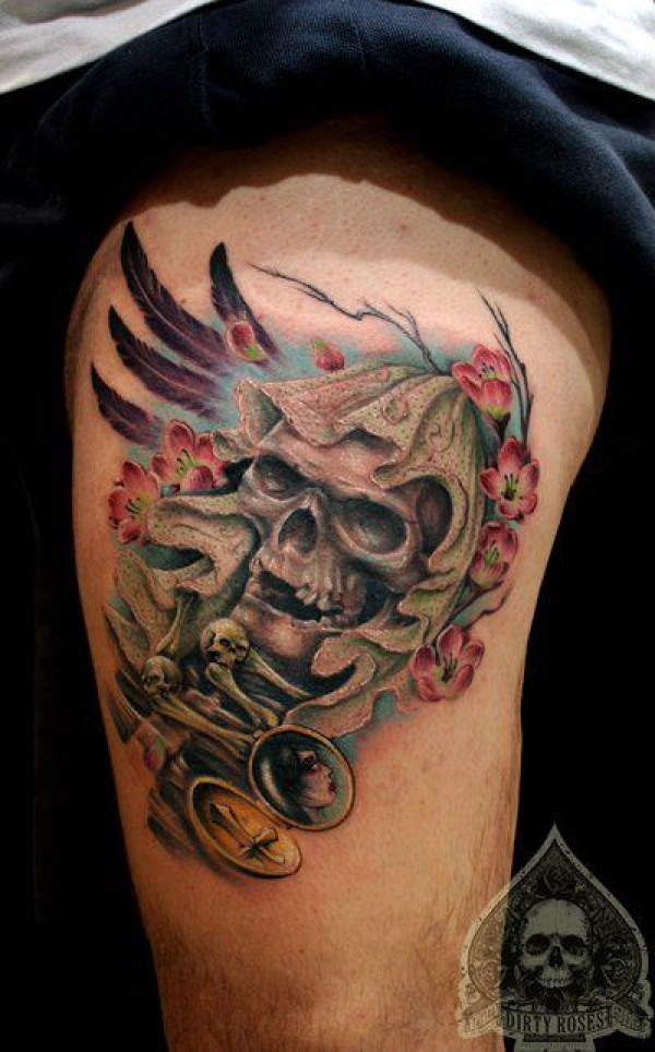 腿部帅气超酷的骷髅纹身图案_骷髅纹身图案大全_纹身图吧