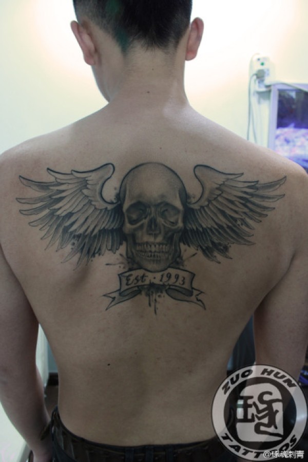 背部骷髅翅膀纹身_骷髅纹身图案大全_纹身图吧