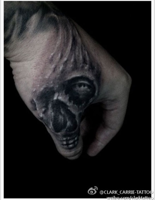男人手部超酷的黑白骷髅纹身图案_骷髅纹身图案大全_纹身图吧
