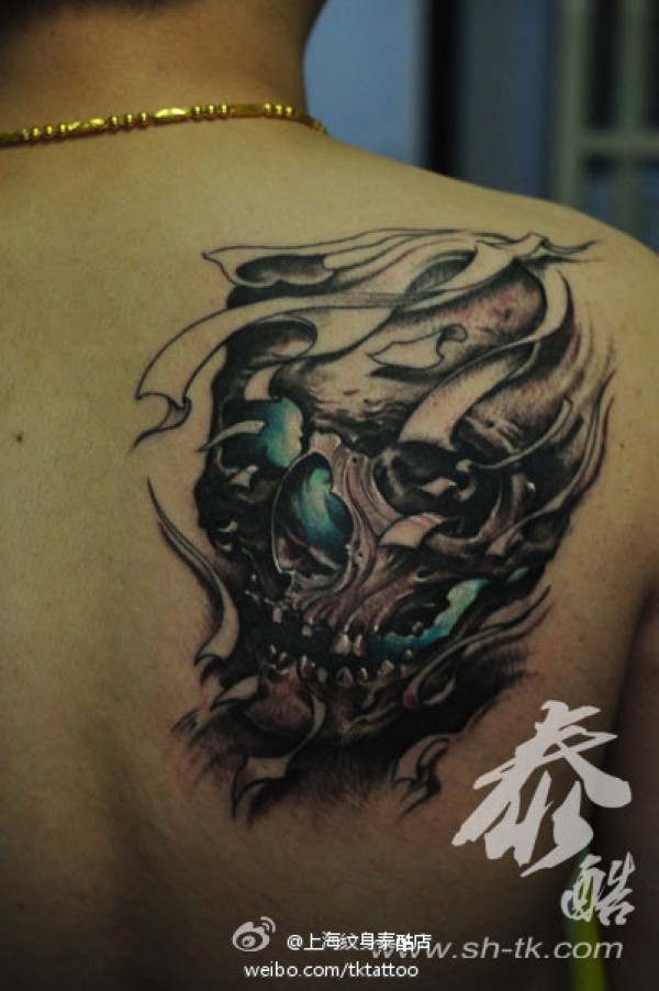 男人肩背经典时尚的骷髅纹身纹身图案_骷髅纹身图案大全_纹身图吧