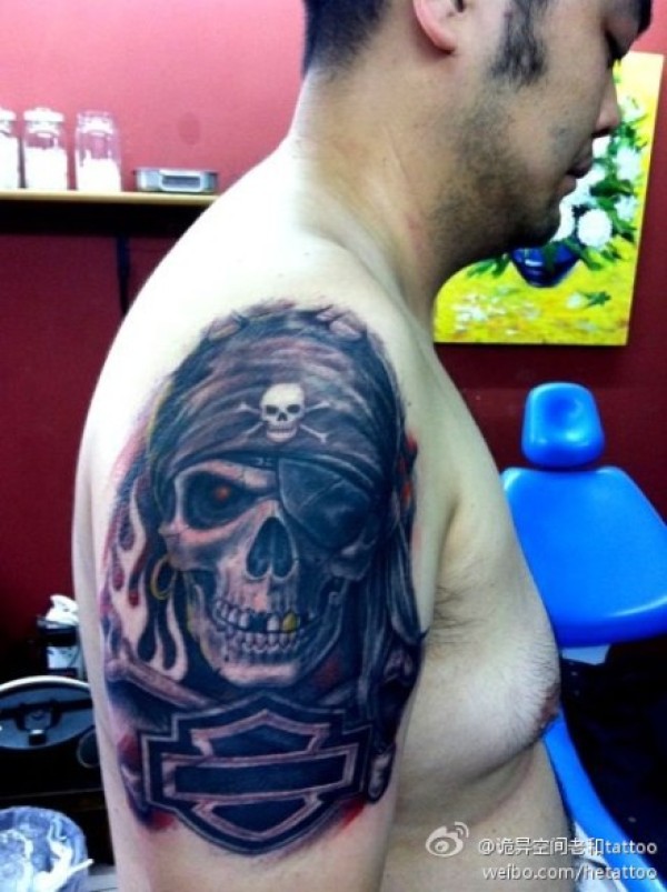 男生手臂帅气的海盗骷髅纹身图案_骷髅纹身图案大全_纹身图吧
