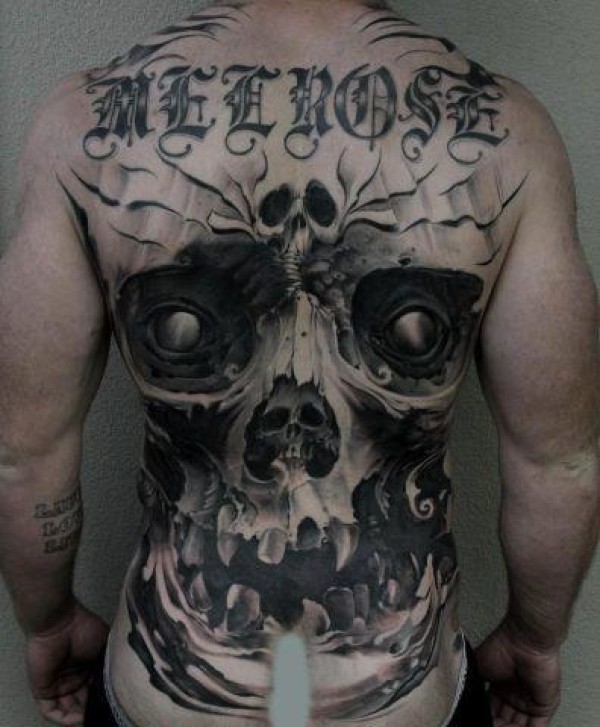 满背欧美写实骷髅纹身_骷髅纹身图案大全_纹身图吧