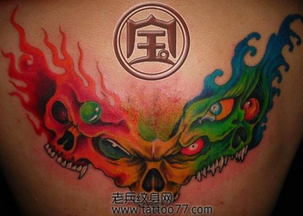 背部漂亮的彩色骷髅纹身图案_骷髅纹身图案大全_纹身图吧