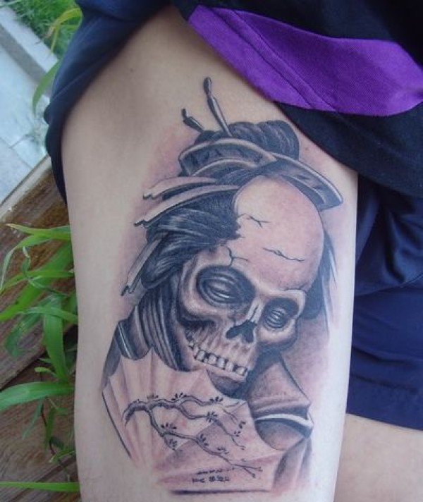 腿部帅气经典的骷髅纹身图案_骷髅纹身图案大全_纹身图吧