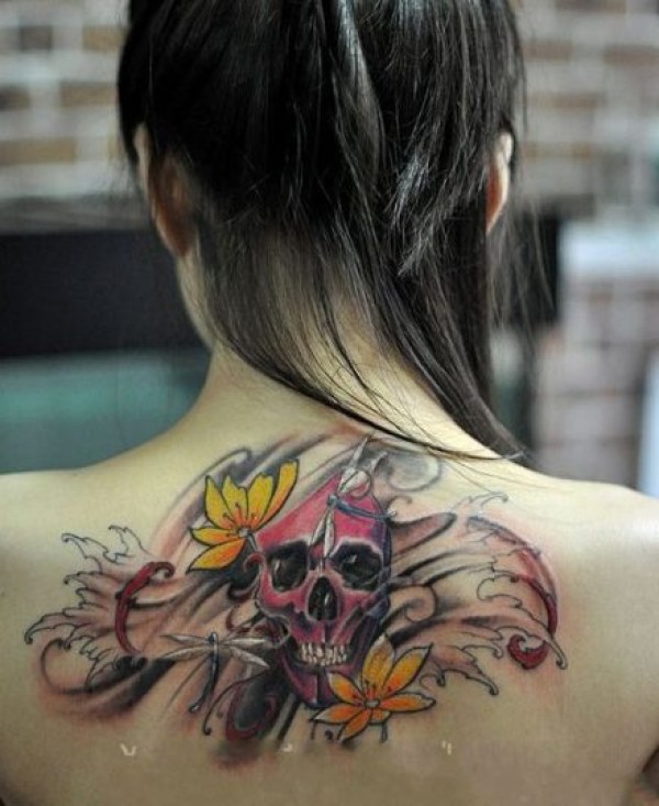 美女背部好看的骷髅纹身图案_骷髅纹身图案大全_纹身图吧