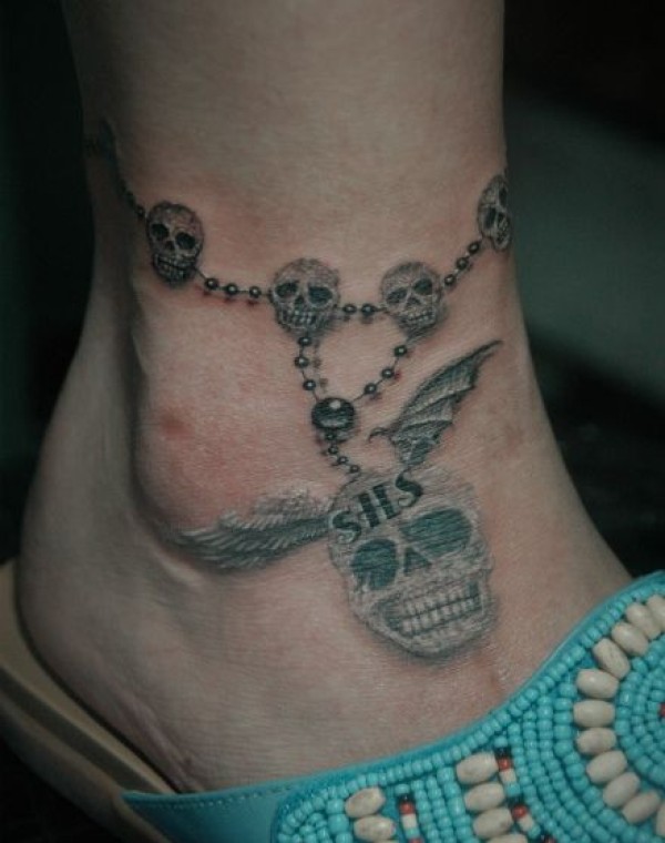女生脚部时尚精美的骷髅脚链纹身图案_骷髅纹身图案大全_纹身图吧