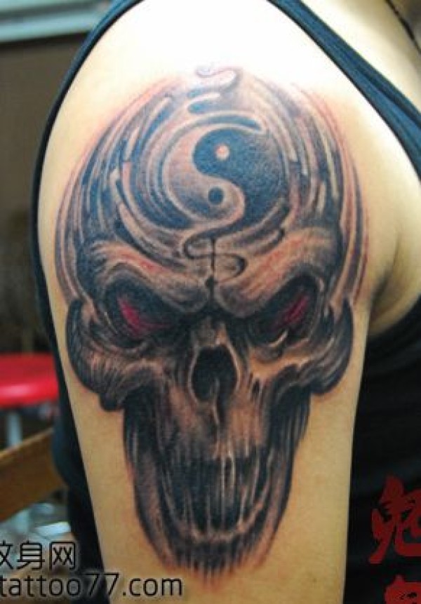 手臂霸气的一款八卦骷髅纹身图案_骷髅纹身图案大全_纹身图吧