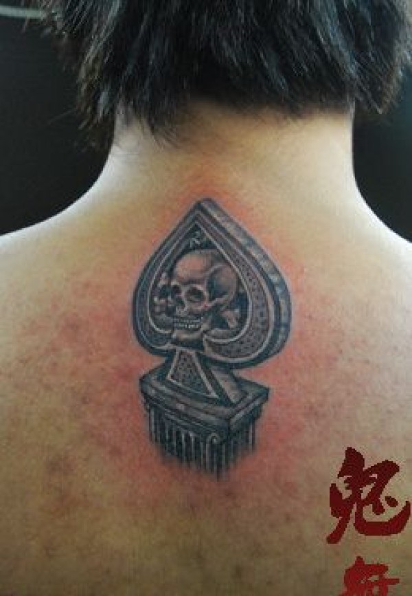 男生背部一款黑桃骷髅纹身图案_骷髅纹身图案大全_纹身图吧