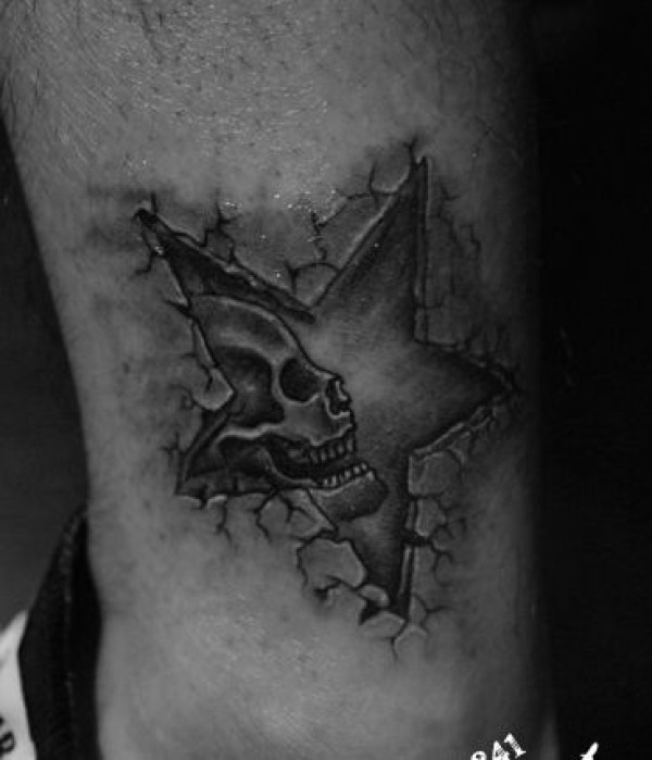 腿部烙印五角星骷髅纹身图案_骷髅纹身图案大全_纹身图吧