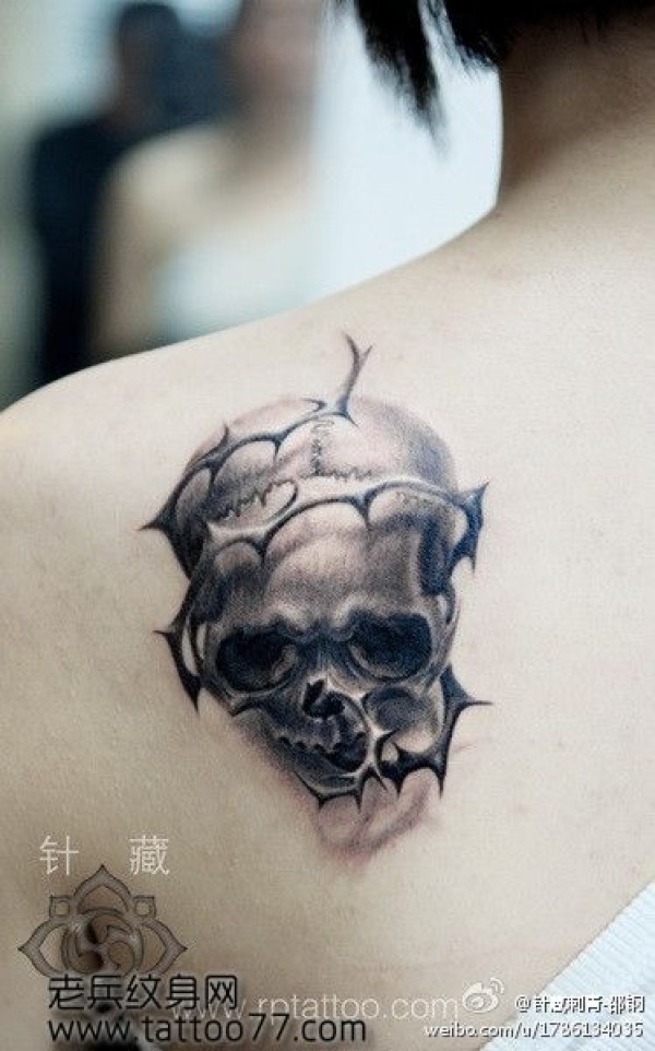背部戴皇冠的骷髅纹身_骷髅纹身图案大全_纹身图吧