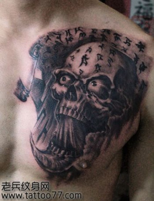 超酷的胸部骷髅纹身图案_骷髅纹身图案大全_纹身图吧