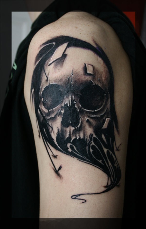 大臂欧美撕皮骷髅纹身图案图片大全_骷髅纹身图案大全_纹身图吧