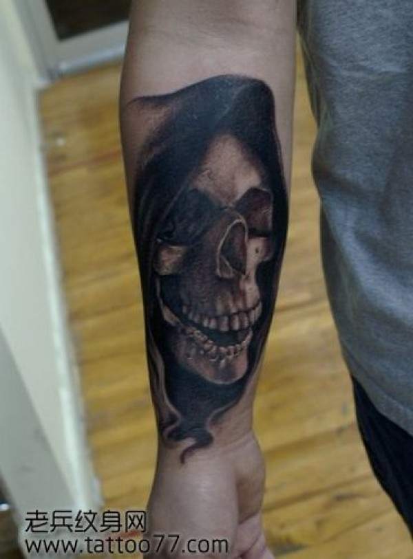 手臂死神骷髅纹身图案_骷髅纹身图案大全_纹身图吧