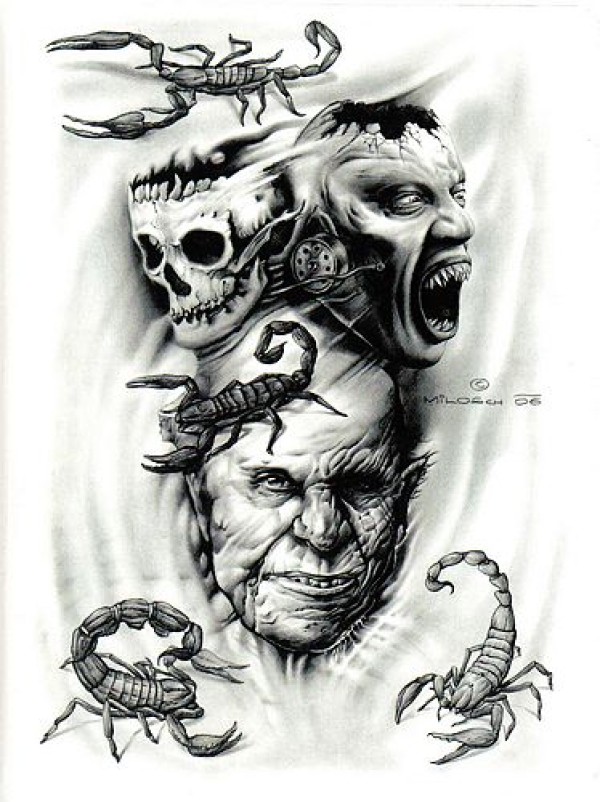 湖北武汉纹身店骷髅蝎子纹身图案图片大全_骷髅纹身图案大全_纹身图吧
