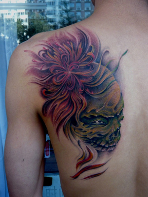 湖北随州纹身店后背彼岸花骷髅纹身图案图片_骷髅纹身图案大全_纹身图吧