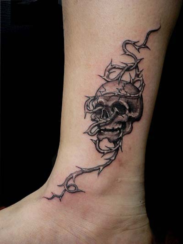 湖北武汉老兵纹身店脚踝荆棘骷髅纹身图案图_骷髅纹身图案大全_纹身图吧