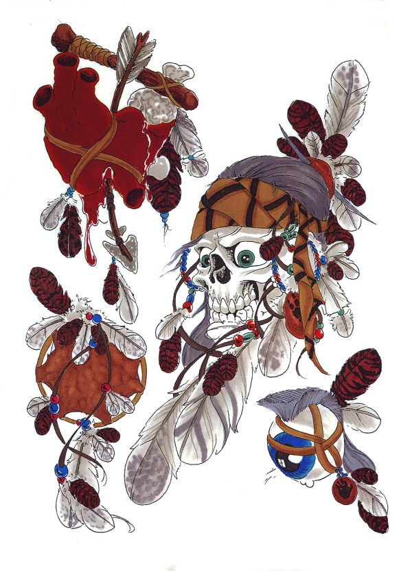 一组骷髅眼珠羽毛纹身图案图片大全_骷髅纹身图案大全_纹身图吧