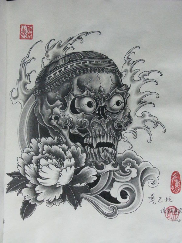 漂亮的嘎巴拉牡丹纹身图案_骷髅纹身图案大全_纹身图吧