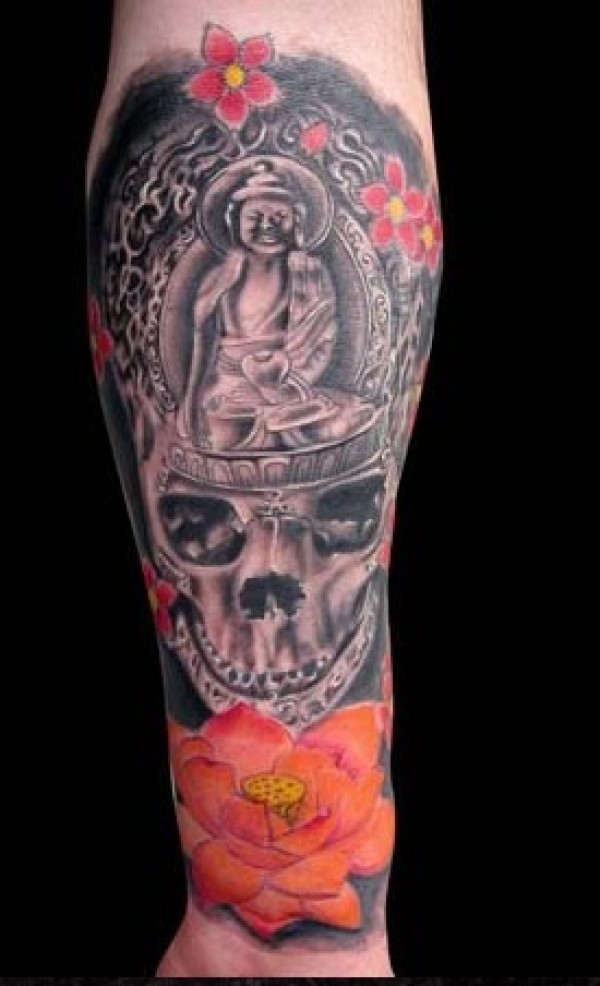 手臂骷髅菊花纹身_骷髅纹身图案大全_纹身图吧