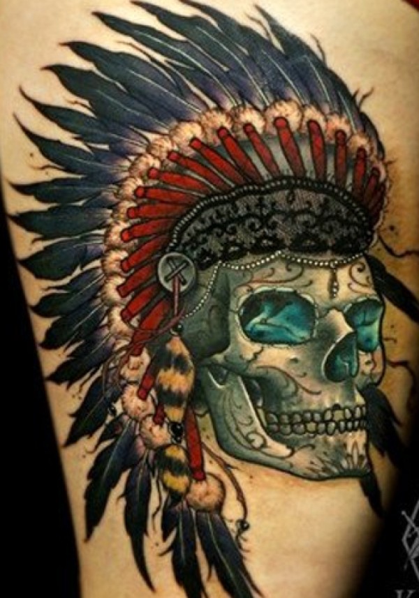酋长骷髅纹身图案_骷髅纹身图案大全_纹身图吧