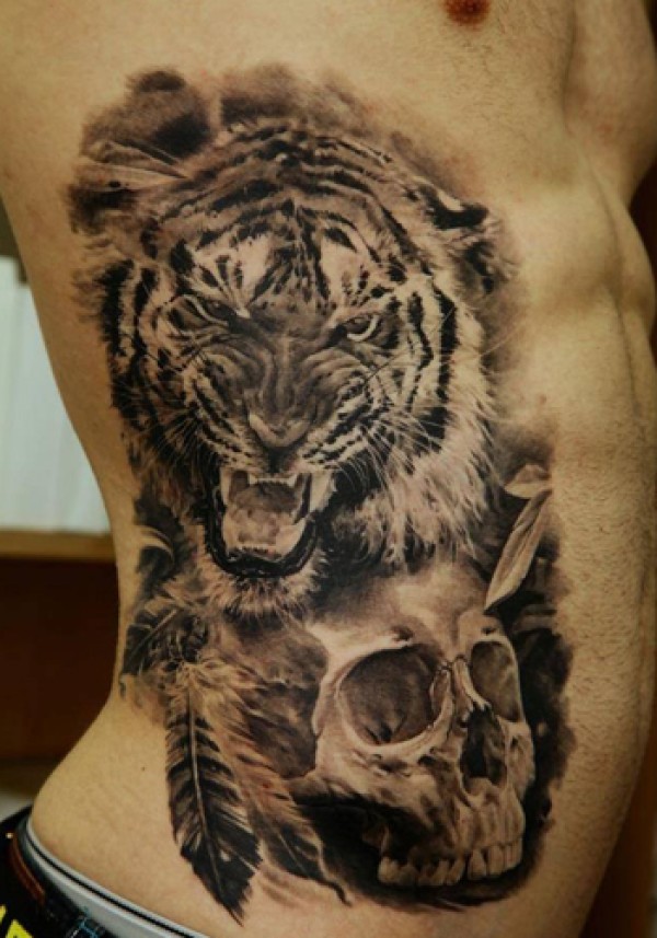 骷髅头老虎纹身_骷髅纹身图案大全_纹身图吧