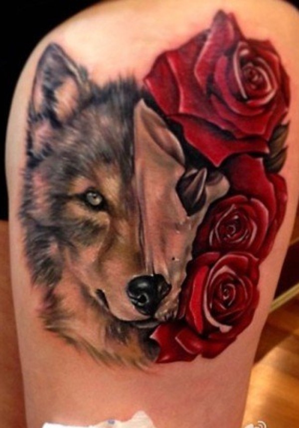 腿部经典狼头与骷髅纹身_骷髅纹身图案大全_纹身图吧
