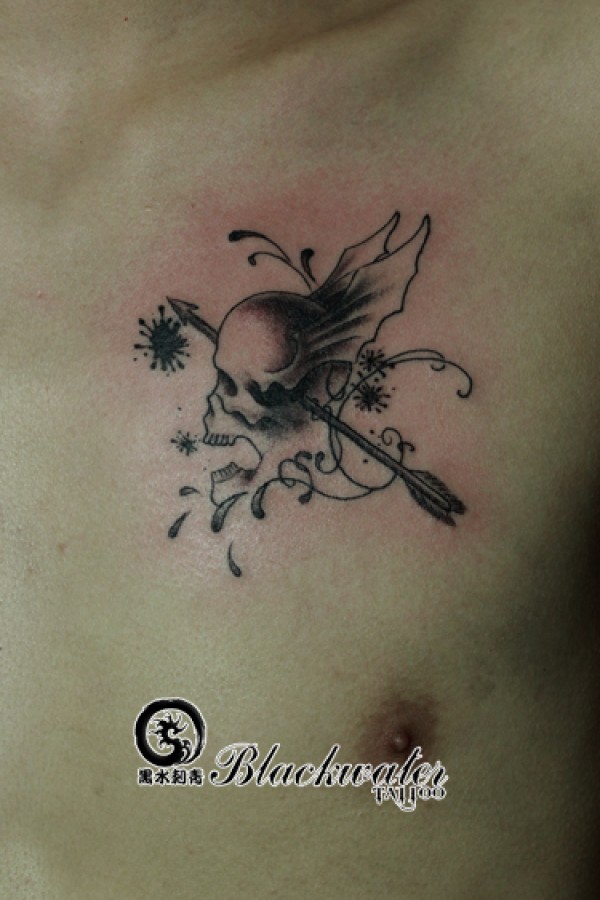 胸部骷髅翅膀纹身_骷髅纹身图案大全_纹身图吧