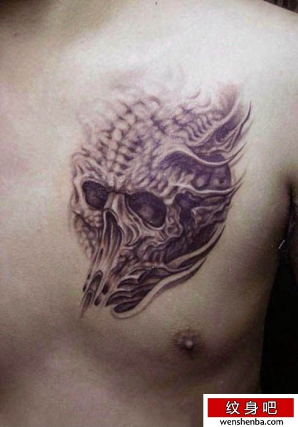 胸部骷髅翅膀纹身_骷髅纹身图案大全_纹身图吧