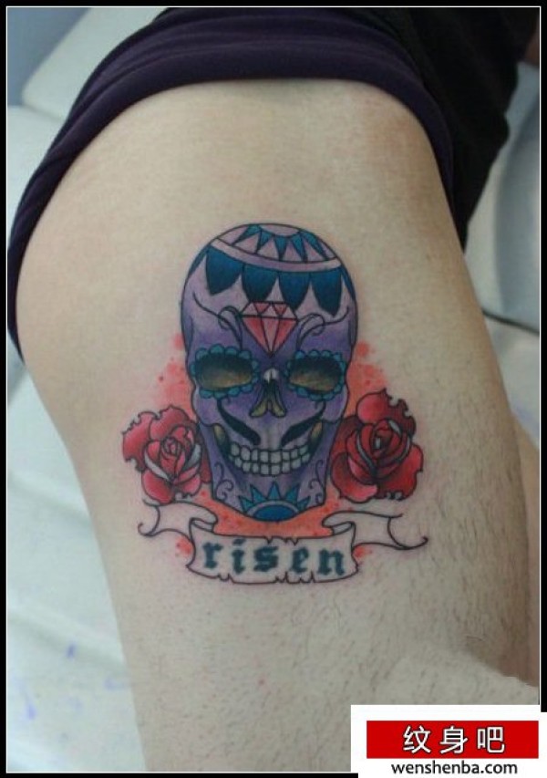紫色骷髅头纹身图案_骷髅纹身图案大全_纹身图吧
