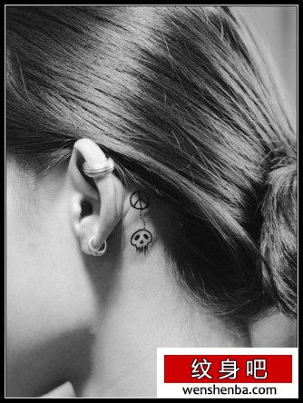 耳朵上的小清新骷髅纹身图案_骷髅纹身图案大全_纹身图吧