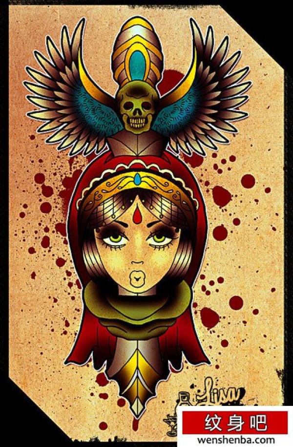 彩色美女骷髅纹身图案_骷髅纹身图案大全_纹身图吧