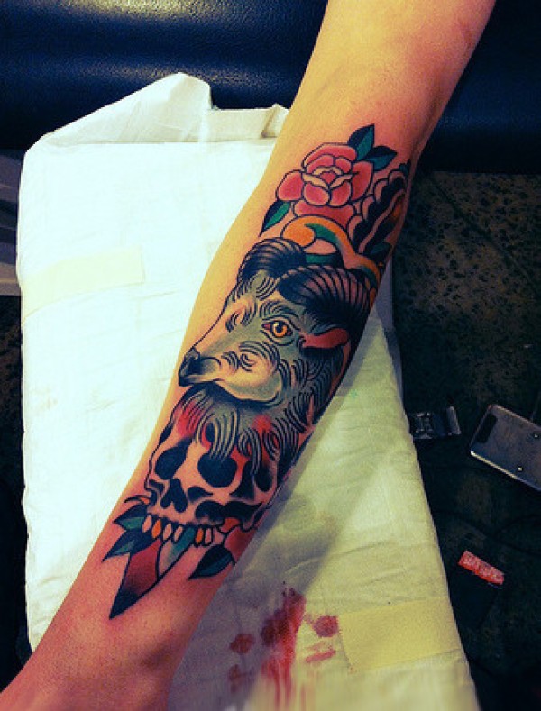 欧美彩色山羊骷髅_骷髅纹身图案大全_纹身图吧