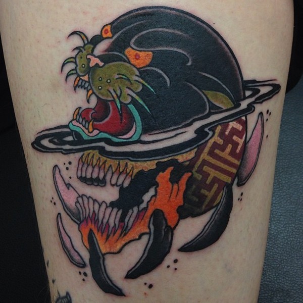 彩色骷髅豹纹身_骷髅纹身图案大全_纹身图吧