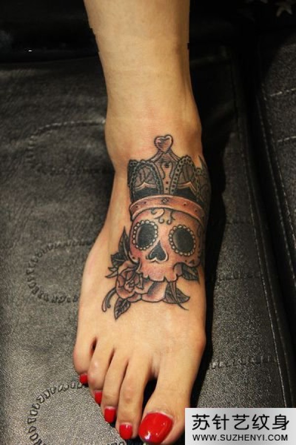 皇冠骷髅脚背纹身_骷髅纹身图案大全_纹身图吧