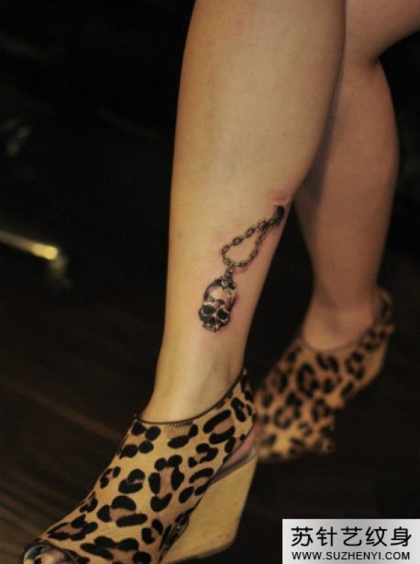 骷髅小脚链纹身图案_骷髅纹身图案大全_纹身图吧