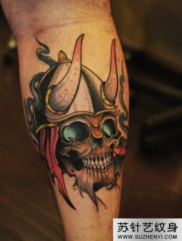 骷髅骑士创意腿部纹身_骷髅纹身图案大全_纹身图吧