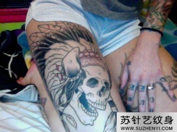 大腿上夸张骷髅纹身_骷髅纹身图案大全_纹身图吧