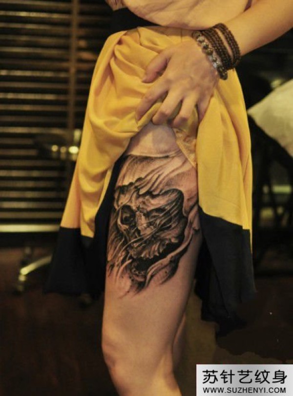 欧美骷髅大腿纹身_骷髅纹身图案大全_纹身图吧