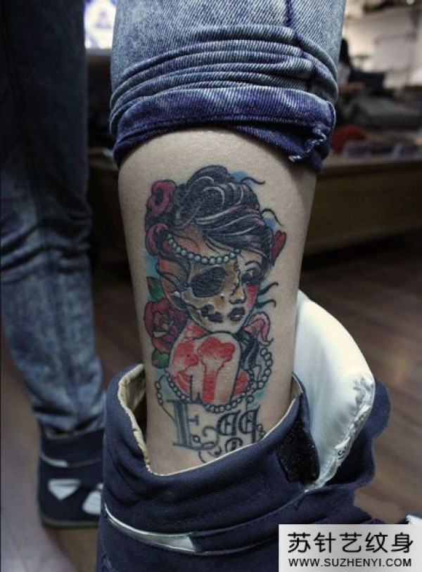 骷髅美女复古纹身_骷髅纹身图案大全_纹身图吧